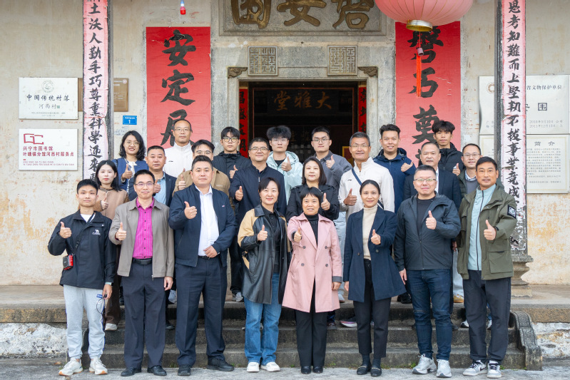 为深化“双百工程”校地合作,凝聚师生力量赋能乡村振兴,11月20至21日,湾区影视产业学院、体育学院、艺术与设计学院与广州职业技术大学公共课教学部、艺术设计学院一行赴兴宁市开展专题调研。兴宁市委副书记麦东阳,市委常委、宣传部部长罗丽思,“双百行动”驻兴宁服务队队长周琪锋、副队长刘炜、湾区影视产业学院党委书记陈蓉、副院长董超、体育学院党委书记郑田、副院长黄怀权、艺术与设计学院副院长宋琦等师生参加调研。