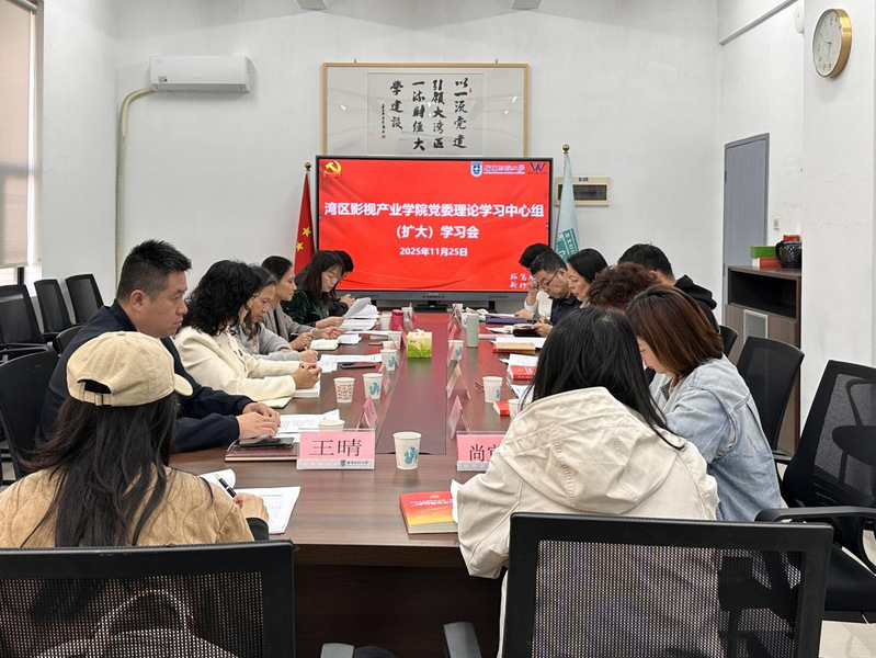 11月25日,湾区影视产业学院党委在佛山校区厚德楼427会议室召开党委理论学习中心组(扩大)学习会,专题学习党的二十届四中全会精神。学校党建工作督导组督导员董锦红到会指导,学院党委领导班子、各党支部书记以及系主任参会,会议由学院党委书记陈蓉主持。