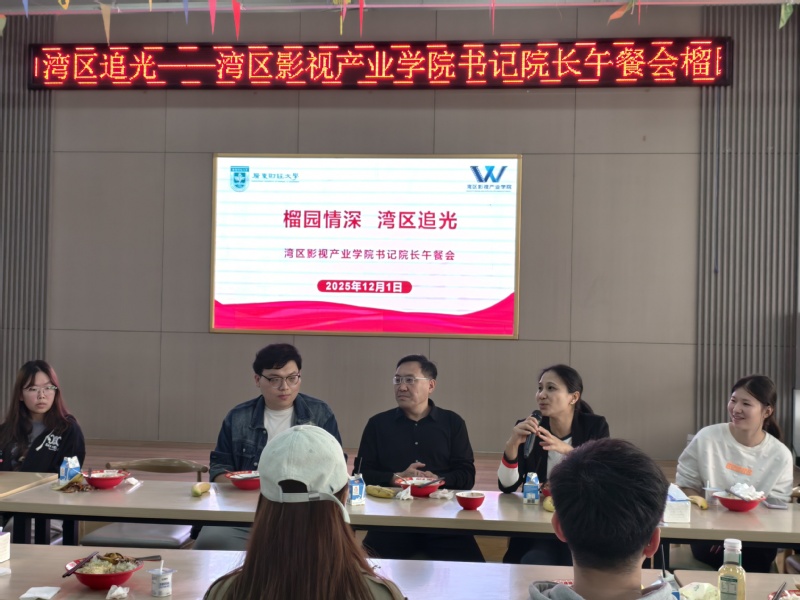 活动尾声,陈蓉指出,午餐会的形式利于增强师生之间的沟通交流,希望同学们传承榴园精神,将个人成长融入文化强国建设大局,锤炼专业技能深耕岭南文化沃土,为大湾区影视产业贡献青春力量。